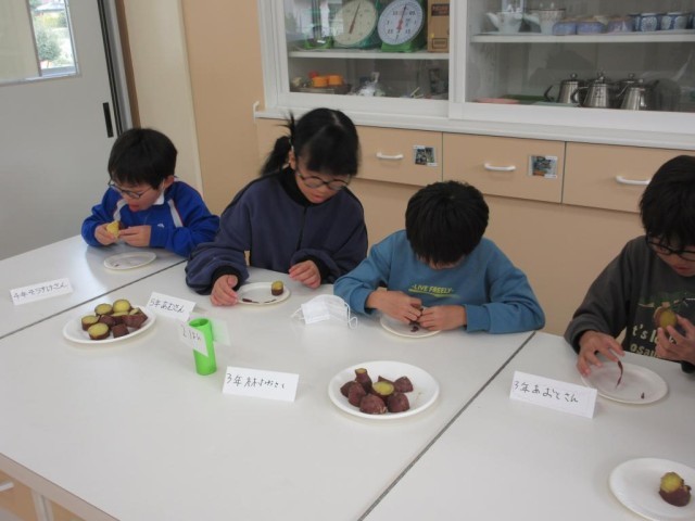 今日の2・3校時、平井小学校のお友達を招いて、日野小で交流学習を行いました。今日は、サツマイモをふかして食べる調理実習と、モルックをして交流を深めました。サツマイモをふかしているときは、時計のにらめっこ、待ちきれずに時々蒸し器の蓋を開けて確かめています。お互いに協力して活動する様子も見られ、試食後はモルック大会で盛り上がっていました。平井小学校のみなさん、ありがとうございました。これからもよろしくお願いします。