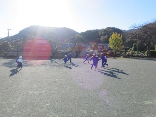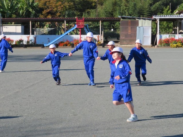 今日の業前は体育集会です。体育・保健委員会の6年生が、寒い朝に体を温める運動として、手つなぎ鬼を考え実施しました。3人の鬼が手をつないで、捕まった人はまた手をつないで鬼になる遊びです。5分間×2回で実施しましたが。走り回って体はぽかぽかです。今日一日元気にスタートできそうです。体育保健委員会のみなさん、ご苦労様でした。