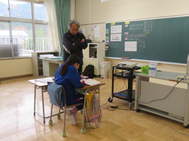4時間目は、各クラスで授業が行われました。2年生は道徳「やさいむらの子どもたち」、3年生は社会「スーパーマーケットのお仕事」、5年生は算数「分数と小数、整数」、6年生は理科「てこのはたらきと仕組み」の学習です。子供たちは、いつもどおり真剣に取り組んでいました。
