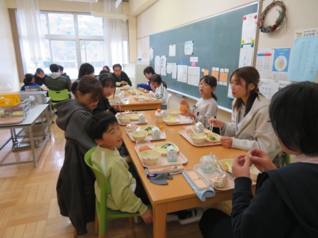 4校時終了後、給食試食会を開催しました。保護者や地域の方30名が参加してくださいました。保護者は児童と一緒にランチルームで、地域の方は家庭科室や集会室で食べていただきました。ほとんどのみなさんが完食してくださり、「とてもおいしかったよ」という声をたくさんいただきました。また、食事が終わってお帰りになる際、「日野小最後の年に子供たちの様子を見に来ることができてよかった」「子供たちが勉強を頑張っていて感心した」「参加できて楽しかった。ありがとう」といった声もいただきました。その温かい言葉を聞きながら、子供たちは地域の方に見守られながら育っているのだということを改めて実感しました。参加してくださった皆様、本当にありがとうございました!