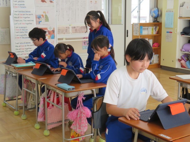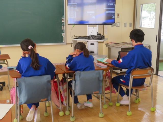 6年生は、総合的な学習の時間に「修学旅行のまとめ」をしていました。班ごとに役割を分担して、キャンバでスライドを作成していました。作業に集中して取り組むとともに、分からないところは教え合いながら作業を進める姿は、さすが6年生という感じでした。工夫したスライドを見ているうちに、この先の発表がますます楽しみになりました!