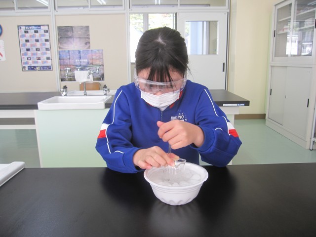 水よう液を冷やして、とけている物をとり出すことができるか調べました。
