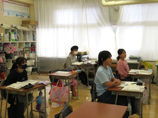 6年生は、社会科の学習に取り組んでいました。今日は、「国学はどのような学問か。また、新しい時代への動きは、どのようなものだったのだろうか。」というめあてで学習が進んでいます。国学の中心的な人物である本居宣長について調べたことを発表したり、打ちこわしの図から当時の時代背景を考えたりしていました。教科書の図やグラフを丁寧に読み解きながら集中して課題解決に取り組む姿は、さすが高学年でした。