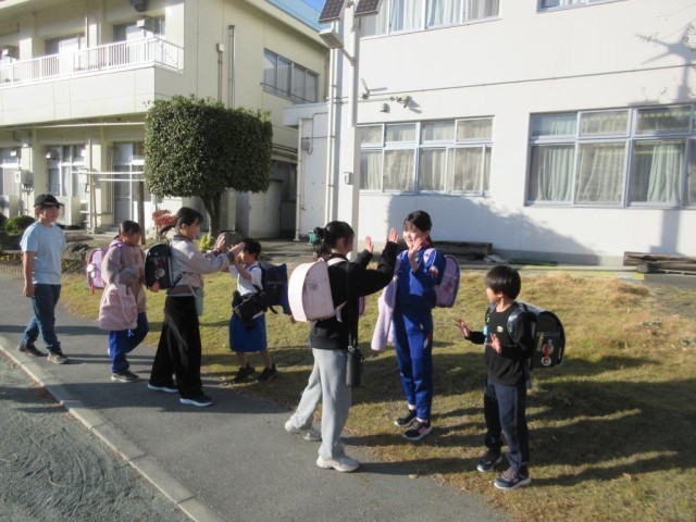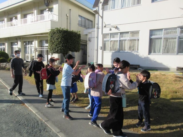 今日の放課後はスマイルハイタッチあいさつ運動の日です。2・3・5年生が、6年生をハイタッチで見送り、「さようなら」のあいさつを交わしました。