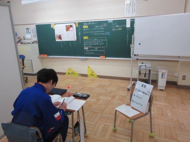 みかぼ学級では3年生が国語、6年生が算数の学習をしていました。3年生は説明文の読み取りで、「獣医さんが、イノシシに不安を与えないようにしているのは、イノシシがどんなことを嫌がるためですか」との先生からの発問に、しばらく考えて「機械をあてられるところ」と答えていました。文中から答えを見つけることができました。6年生は、整数の性質の中で、倍数について学習していました。3個パックのものと4個パックのものの中身の数が等しくなるのはそれぞれ何パックずつ買ったときかを考える問題で、まずは倍数とはどんなものなのかを学んでいます。次時の学習で「公倍数」について学んでいきます。