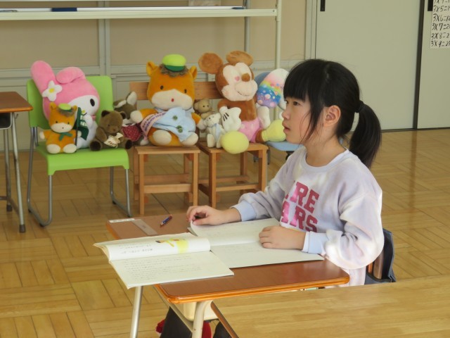 2年生は、国語で物語「みきのたからもの」の学習をしていました。今日は、二の場面を読んであらすじを把握し、主人公のみきさんがどんな子なのかを想像しました。一の場面同様、みきさんの行動から、みきさんがやさしい子であると想像していました。明日は、三の場面の学習です。次はどんな出来事が起こるのか、楽しみですね。