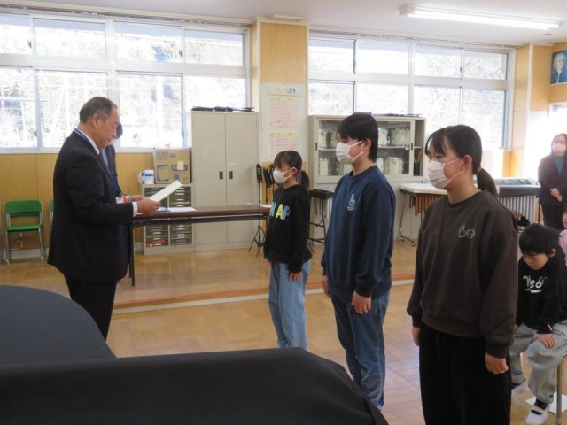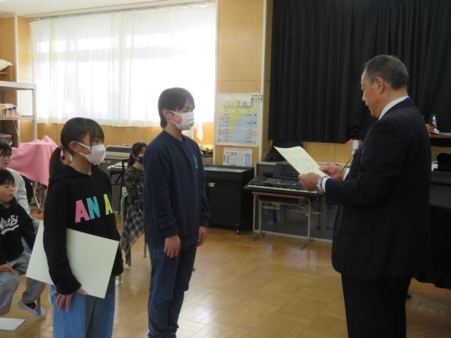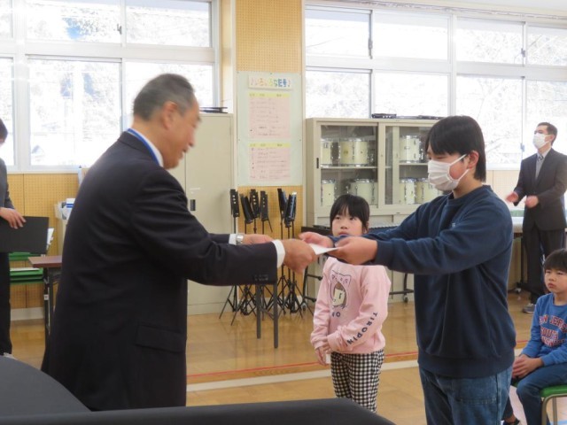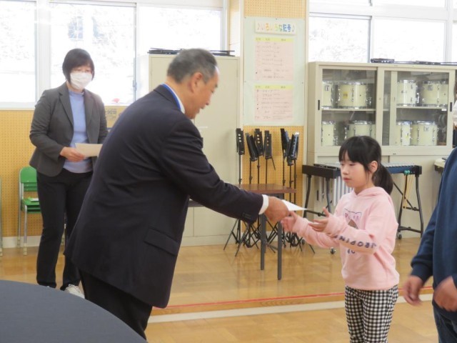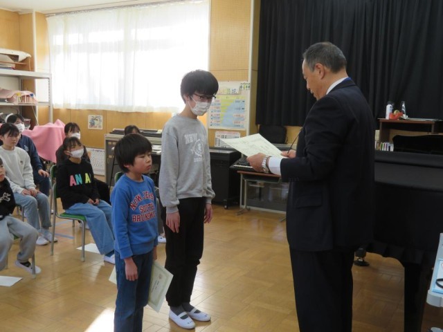 今日は2学期最終日、終業式の前に、表彰式を行いました。よい歯のコンクール、読書感想文、理科・郷土自由研究、漢字・計算コンテスト、長縄チャレンジです。子どもたちのがんばった成果をみんなで称えました。