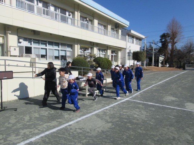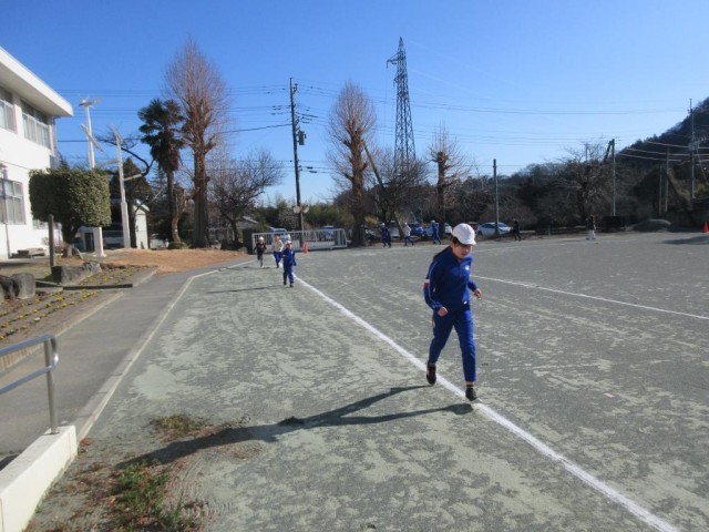 先週から20分休みに持久走の練習が始まっています。5分間音楽に合わせて校庭を走り、マラソンカードのコマに色を付けていきます。音楽が鳴る前から子どもたちは走り始めやる気十分です。先生もいっしょに走ります。終わった後は保健の先生が用意してくれたお茶でうがいです。1月末の平井小学校と合同で行うチャレンジランニングに向けて子どもたちはがんばっています。