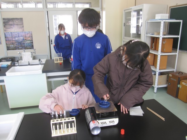 1/22 6年生 理科 その1 公開日 2026/01/22 更新日 2026/01/22 できごと 液から水を蒸発させて、とけた金属はどうなっているか調べました。 塩酸に金属がとけた液から水を蒸発させると、固体が出てきました。 +3