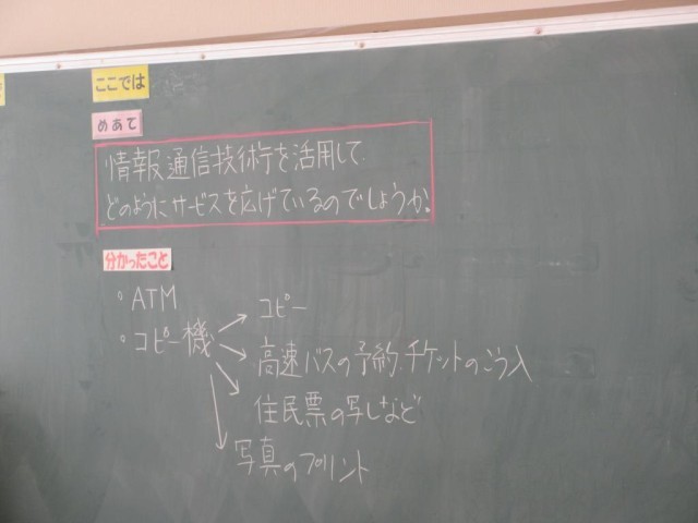 1/23 4校時5年生社会科の学習 公開日 2026/01/23 更新日 2026/01/23 できごと 5年生は社会科で、情報の学習をしています。今日は情報サービスにはどのようなものがあるかを考えています。多様な場所で情報サービスが受けられることを確認していました。