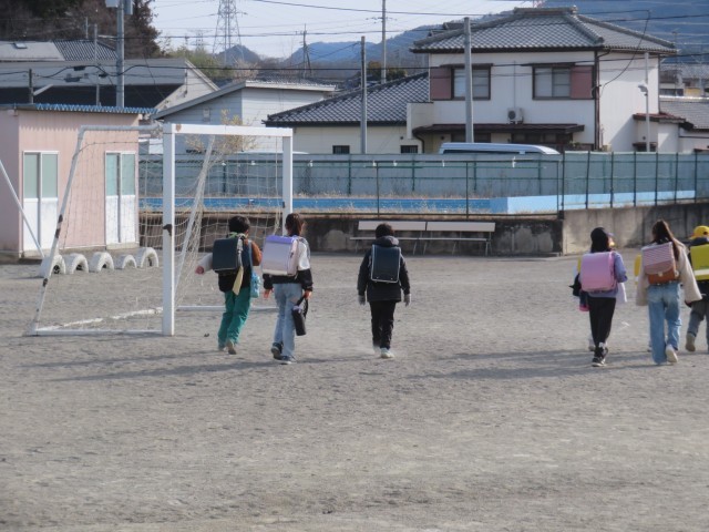 平井小学校では、月曜日は集団下校です。地区ごとに集合し、安全担当の先生のお話を聞いてから「さようなら」をしました。その後は、スクールバスに乗ったり、学童へ向かったりして下校しました。新しい環境の中で1日過ごしたので緊張したと思いますが、11人全員、大変よく頑張ったと思います。今日はゆっくり休んで、また、明日から頑張りましょう。そして、平井小学校の児童のみなさん、先生方、ありがとうございました。明日もよろしくお願いします!