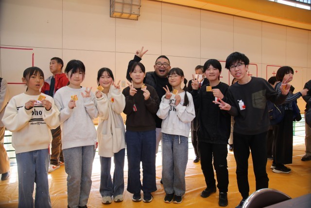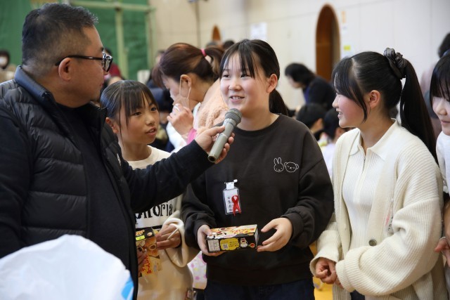 閉校記念イベントには、サプライズゲストとして、FMぐんまのラジオパーソナリティーや藤岡市観光特使を務める内藤聡さんにお越しいただきました。内藤さんは、「お菓子おじさん」として会場内を回りながら子どもたちや地域の方と触れ合い、イベントを盛り上げてくださいました。また、翌朝のラジオ「WAI  WAI  Groovin'」の中で、閉校記念イベントについてお話しをしてくださいました。内藤さん、ありがとうございました。