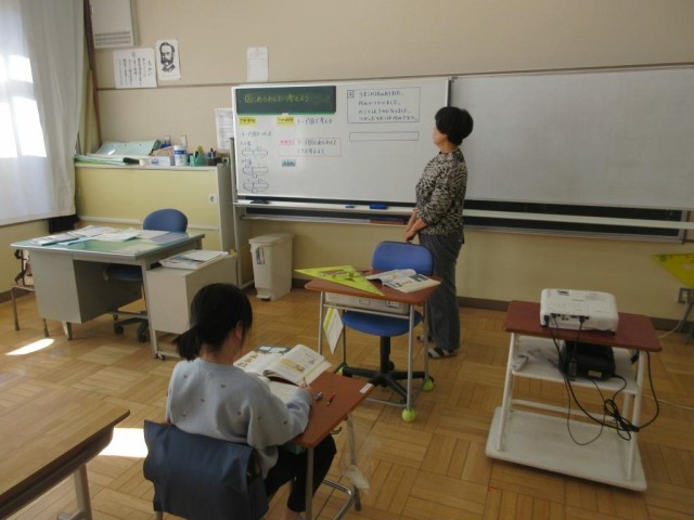 2年生は算数で、テープ図に自分で表してみて式を考える学習に取り組んでいます。先週平井小学校でたし算をテープ図に表す学習をしたことを生かして今日は引き算の表し方に取り組んでいます。