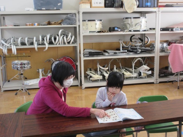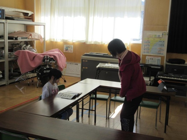 2年生は音楽で童謡を楽しむ学習をしています。今日は「おちゃらかおちゃらか」をやってみました。2年生は「初めて聞いて」とのことで何回か繰り返して聞いたり口ずさんだりした後に、先生といっしょに実際に手遊びをしていました。とても楽しそうです。