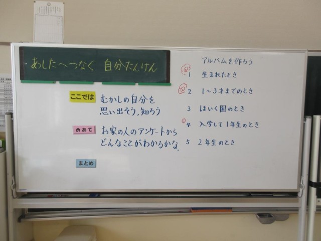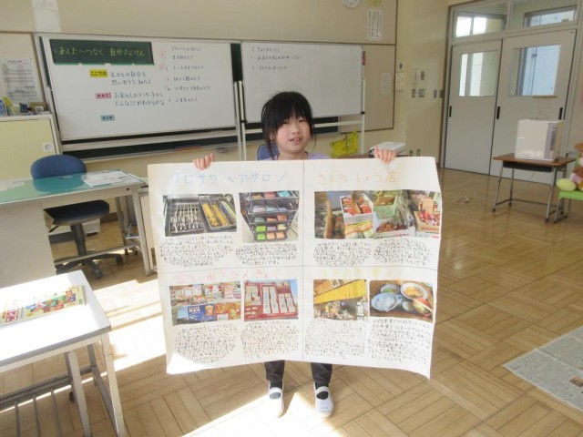 2年生は生活科で、町たんけんのまとめと、「あしたへつなぐ自分たんけん」の2つの学習を進めました。町たんけんのまとめは今日が最後の時間で、探検したお店の様子や感想、わかったことなどを模造紙にまとめました。集中して書いている様子にびっくりしました。「あしたへつなぐ自分たんけん」では1年生の時を思い出して好きだったことや得意だったこと、難しかったことなどを文章や絵にまとめました。最後は1つのアルバムになる予定です。どんなものができあがるかとても楽しみです。