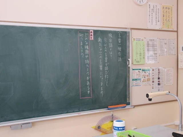 5年生は国語で「複合語」の学習に入りました。これまで学習した「熟語」のことを思い出しながら、複合語にはどんな種類があるのか、どんな言葉がそれに当てはまるのかなどを学習していきます。今日は複合語の6つの種類について学んでいきます。