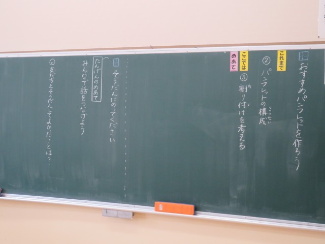 みかぼ学級は国語の時間でした。3年生は、「そうだんにのってください」という単元の学習で、教科書の例をもとに、友達に相談してみたいこと(話題)を考えていました。また、6年生は、おすすめのパンフレットをつくるために、教科書の例からどんな割り付けができるのかを考えていました。二人とも、教科書の例を参考にしながら一生懸命考えることができました!