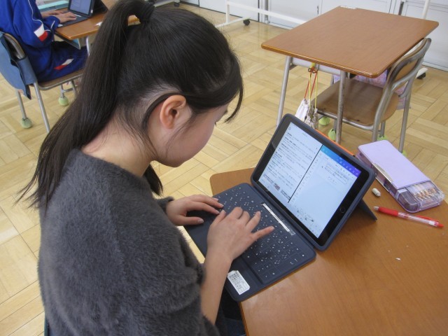 2/26 6年生 理科 公開日 2026/02/27 更新日 2026/02/26 できごと 「地球に生きる」の学習のまとめとして、環境問題に関するレポートの作成を始めました。子ども達が、自分でテーマを決めて、プレゼンテーションアプリを使いレポートの作成に当たっています。 +3