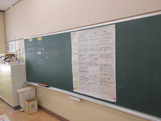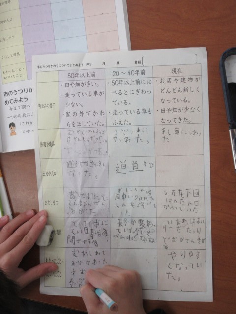 3年生は社会科で藤岡市の移り変わりについて、表にまとめる学習をしていました。鬼石町が合併して新しい藤岡市ができたことを初めて知ったようで興味深そうにまとめていました。