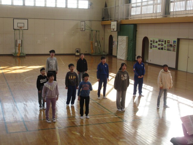 今日の業前は卒業式で歌う校歌や式歌の練習を行いました。今日から体育館での練習が始まりました。週明けでどうかなと思ったのですが、きれいな伸びやかな声が出ていました。卒業式に向けて練習を重ねていきます。