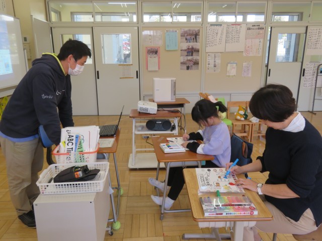 2年生は、今年度最後の英語の授業でした。今日は、この1年で学んだことを振り返り、ALTの先生が作成したすてきなワークシートに取り組んでいました。ワークシートを見せてもらうと、自分の名前がアルファベットで書いてあったり、色や数字、体の部分を復習していたり、「I like~」で好きな物の絵が描かれていたりと、この1年でたくさんのことを学んだんだなあと感心させられました。3年生になっても、ぜひ、英語の勉強を頑張りましょうね!