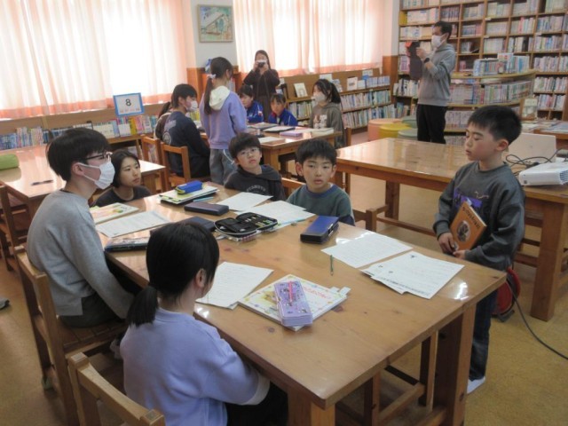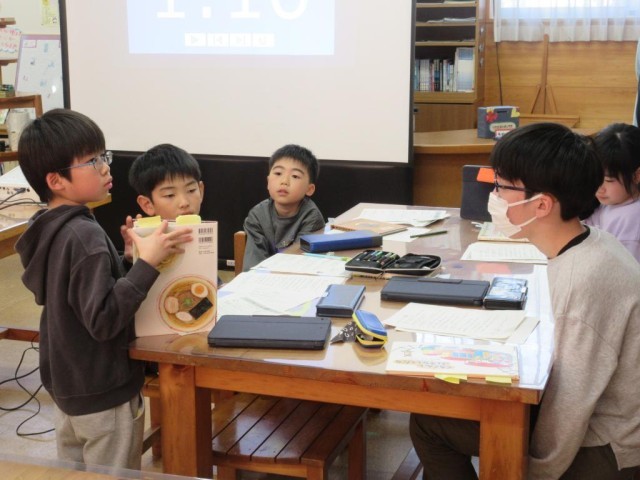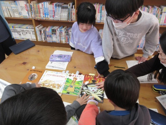 今日の5校時、これまで準備を進めてきた「ビブリオバトル」を行いました。高学年のグループと、低学年のグループとに分かれて、それぞれ推しの本を1冊2分間で紹介し、その後2分間の質疑応答の時間を設けて、どの本が一番読んでみたいかを投票により決めました。どの子も、自分のおすすめの本を紹介するのに熱弁を振るい、中には2分では足りない子もいました。また質疑応答でも、あらかじめ質問例を用意していたので子どもたちはどんどん質問し、答える方も必死でした。最後は指さしによる投票でそれぞれのグループが一番読んでみたい本を決めました。どの子も自分のおすすめの本を一生懸命紹介しており、大成功のビブリオバトルとなりました。ちなみに低学年では「うどんVSラーメン」、高学年が「鬼遊び」という本が選ばれました。これらの取組が読書の推進につながってくれることを期待しています。