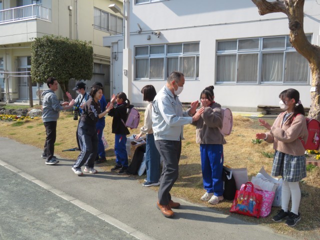 今日の下校は今年度最後のスマイルハイタッチあいさつ下校でした。最終回では6年生が送り出す側になって在校生をハイタッチで見送りました。6年生のみなさん、ありがとうございました。明日はみんなでよい卒業式にしてみなさんを見送ります。