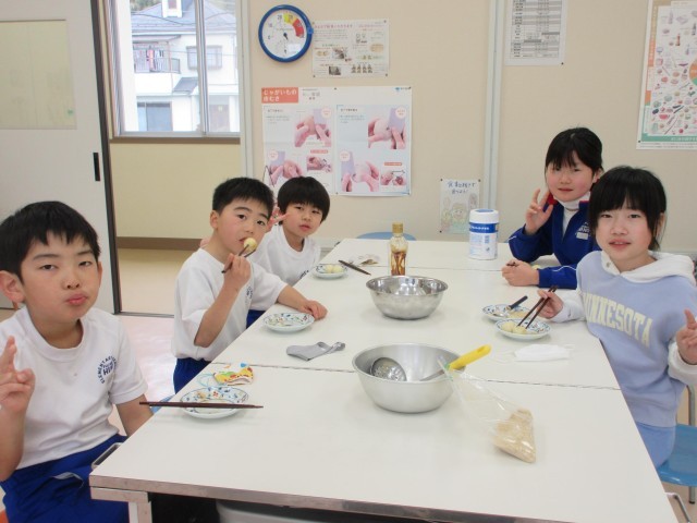 6年生が卒業してさみしい限りですが5人の在校生は、明日の閉校式に向けて練習したり、最後のお楽しみでお豆腐団子作りをしたりしました。みんなで協力して団子作りを楽しみ、おいしくいただきました。明日はいよいよ修了式、閉校式です。最後まで日野小の子どもたちらしさを発揮してフィナーレを飾ってくれることと思います。