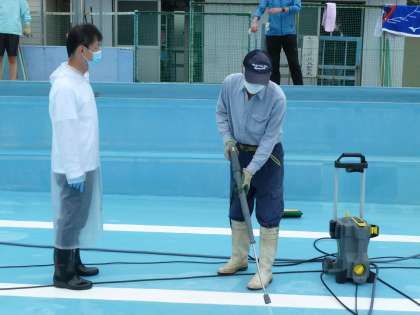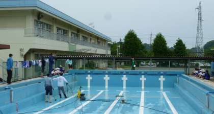 5月17日(火) プール清掃(1) 公開日 2022/05/17 更新日 2022/05/17 できごと 今日は、全校児童と教職員でプール清掃を実施しました。これまでも、業務員さんを中心に教職員で少しずつ掃除を行い、昨日は地域の方々にもご協力いただいています。本日も地域の方がお手伝いに来てくださる中、子どもたちも一生懸命頑張りました。6年生をリーダーに、2つの団がそれぞれ力を合わせて隅々まできれいにしました。
