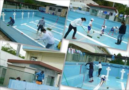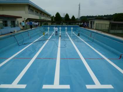 この後、プールサイドや更衣室の掃除をし、プールへの注水が始まります。水泳の授業は、6月スタートの予定です。