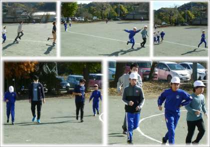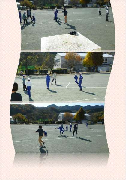 20分休みの最初の5分間は、持久走練習をしています。子どもたちと先生たちとで、とてもいい汗を流しています。来週30日の美九里西小との合同持久走大会に向けて、仕上がりも順調のようです(写真上)。その後の休み時間は、子どもたちにとって格別です。今のブームはソフトボール当てです。子どもたちも先生たちも校庭中を走り回り、大いに楽しんでいます。日野小の先生だけでなく、美土里小や平井小の先生方も混じって遊んでくれるのが嬉しく、子どもたちはこの時間をとても大事に思っています。