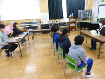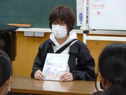上学年では、『ぼく ひこうきにのったんだ』を読み聞かせてくださいました。ボランティアさんがテレビで操縦士の番組を見てご自宅にあるこの本を思い出し、今回読んでくださいました。幼い主人公が初めて飛行機に乗った喜びを中心に、空港の様々な施設などが登場してきます。ボランティアさんは、すでに成人されている息子さんの幼少時にこの絵本を買って読み聞かせたと、懐かしそうにお話しされていました。思い出深い素敵なお話を子どもたちのために届けてくださり、温かい気持ちになりました。
