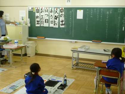 今日は、新年の書き初め大会に向けての練習に取り組みました。2年生は硬筆に、3年生は毛筆にチャレンジします。お手本は、本校の初代校長先生に書いていただきました。子どもたちはお手本を見ながら、一筆一筆を丁寧に書いています。写真は、一枚目を書き終えてよくできた点や課題点を話し合い、2枚目に生かしているところです。