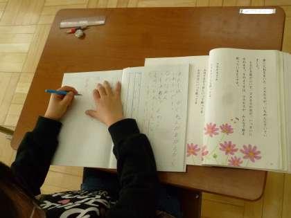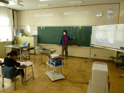 教材「わたしのおねえさん」の学習に取り組んでいる2年生の様子です。今日の授業では、2の場面を振り返り、新しく3の場面の主人公の気持ちの読み取りに入りました。家庭での音読練習の動画も取り入れながら、先生と児童とで丁寧なやり取りをしながら授業が進められています。