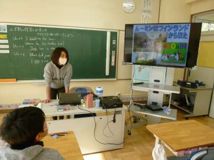 今日の授業では、2学期の学習の振り返りとクリスマスツリー作り、「World Country」からフィンランドについての学習をしました。