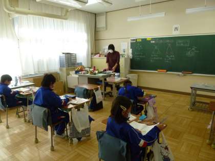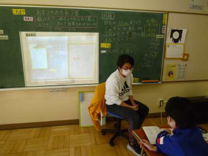 別のクラスでは、あまりのあるわり算について学習していました。これまでの学習を思い出しながら、数が大きくなった場合のあまりのあるわり算のことも、粘り強く考える姿が見られました。