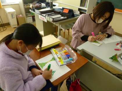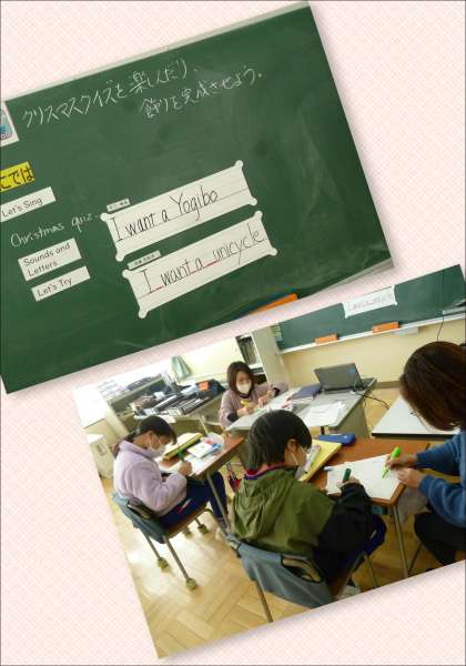 12月16日(金) 5年生外国語の授業 公開日 2022/12/16 更新日 2022/12/16 できごと 今日の授業では、2学期の学習の振り返りとクリスマスのクイズや飾り作りをしました。特に、先生たちと一緒にツリー作りをしている様子はとても楽しそうでした。華やぐ気持ちになり、また来週も頑張れそうですね。