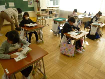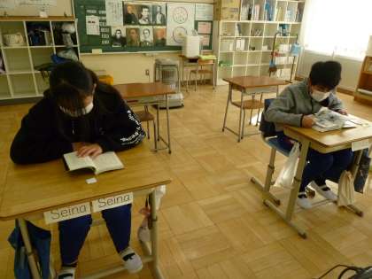 12月19日(月) 朝読書 公開日 2022/12/19 更新日 2022/12/19 できごと 今朝は一段と冷え込みましたが、朝の準備を終えた子どもたちは一心に朝読書に取り組んでいました。〇〇のひみつなどのシリーズ物に熱心に取り組む児童、図書室で借りた本を楽しみながら読む児童…。読書で気持ちを温めて、2学期の最終週の授業へと向かっていきます。