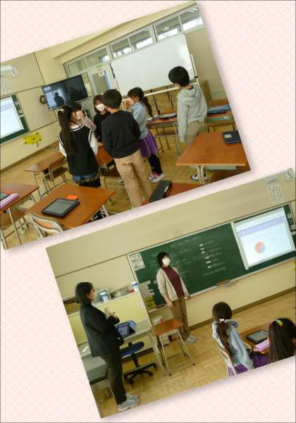3校時には、下学年を対象に家庭でのゲーム時間について考えさせる授業が行われました。動画視聴を通して、ゲームをするなら「時間を決めた方がいい」とした下学年。その理由をアプリを活用して互いに見合った子どもたちは、寝不足や体調不良にならないようにするためにどうしたらよいか話し合いました。ゲームもしたい、でも体調不良は困るという子どもたちは、「やる日を決めて1日1時間」と自分たちの決めごとをつくりました。先生に、厳しめだけど大丈夫かと聞かれても、きっぱりと「大丈夫です!」と返事が。