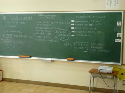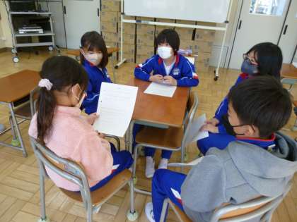 今日の授業では、オリンピック出場を果たした女子ソフトボールチームを題材とした「16番目の代表選手」を通して、良いチームとはどんなチームなのかを考えました。ベンチ入りできるのは15人まで、というところでの各選手の複雑な心境、全選手で心を通わせる様子などを読み取り、良いチームについて各自で考えました。考えを発表し合い、友達の考えに対する感想も伝え合って、「協力し合い、励まし合う」「人のせいにしない」というチーム像を考えました。先生から、これから始まる長縄練習の時にも今日の学習を生かせるだろうかと投げかけられると、子どもたちは皆、明るい表情で「はい!」と答えていました。