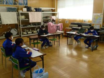 5・6年生は、滝廉太郎の曲を通して「言葉と旋律の美しさを感じ取りながら日本の歌を味わう」学習に取り組んでいます。前回は『花』で女性二部合唱を、今日は「『箱根八里』で男性四部合唱を学習していました。子どもたちからは、『箱根八里』の合唱からは力強さや歯切れ良さを感じると、合唱の種類によって歌声の響き、曲の雰囲気が変わることをつかんでいました。次回の授業では、『荒城の月』の合唱について学習する予定です。