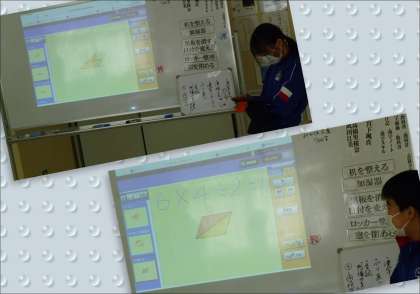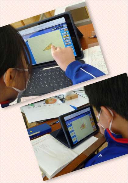 変形の仕方に違いがあり、それぞれ自分はどのようにしたのかを説明していました。じっくりと考え、最後まで自分の言葉で説明することを心掛けている5年生たちです。