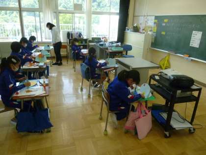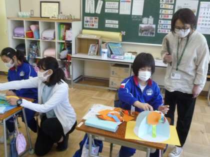5月11日(木) 3・4年生図工の授業(1) 公開日 2023/05/11 更新日 2023/05/11 できごと 3・4年生は、教材「くるくるらんど」の制作に取り組んでいます。今日の授業では、動きの感じに合う形や色を見つけ、工夫して作ることをめあてに活動しました。