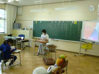 今日の授業では、国語辞典の使い方を学習していました。例題の言葉を、いかに効率よく探すことができるかを先生と一緒に考え、少しずつ早く正確に見つけることができるようになってきています。