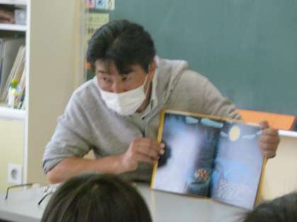 5月16日(火) 今週の読み聞かせ(2) 公開日 2023/05/16 更新日 2023/05/16 できごと 上学年の読み聞かせは、今回、教頭先生が担当してくれました。一生懸命読んでもらい、子どもたちも食い入るように見聞きしていました。 学校では、ボランティアさんを中心に、時に先生方にも読み聞かせをしてもらうことがあります。子どもたちは、読み聞かせを通して様々な方々とふれ合う機会をもち、心豊かに成長していきます。