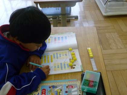 5月18日(木) 1年生算数の授業 公開日 2023/05/18 更新日 2023/05/18 できごと 1年生は、「いくつといくつ」の学習に取り組んでいます。 今日の授業では、6はいくつといくつでできるかなと考えました。ブロック操作を取り入れ、先生と声に出しながら確認し、ノートにも書いていきました。 学習に向かう姿勢、発言の声の大きさ、ノートに書く字など、日に日に成長しています。