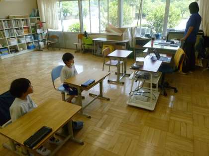 今日は、休み時間に先生が録画した3・4年生の校歌斉唱を参考に練習しました。上級生の元気な歌声に触発されて、1年生も大きな声で歌えるようになってきました。