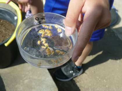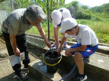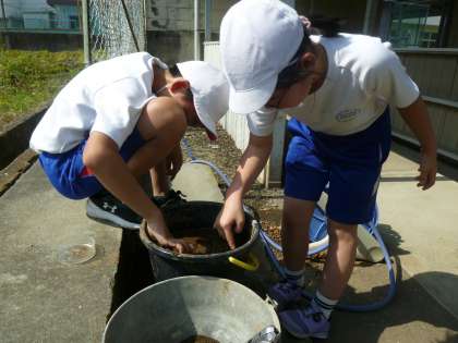 5月18日(木) 5年生の総合的な学習 公開日 2023/05/18 更新日 2023/05/18 できごと 総合的な学習の時間に、稲作に挑戦する5年生。今日の授業では、栄養満点の学校の畑の土をバケツに入れ、水と肥料を入れてかき混ぜたところに、発芽した稲を植えました。 これからまだいくつもバケツ稲を用意するとのことですが、5年生はとても張り切っており、協力して意欲的に取り組む姿はとても頼もしかったです。