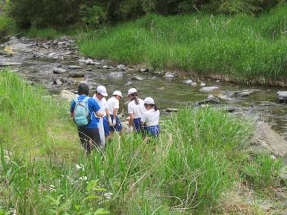 5月19日(金) 稚鮎の放流(4) 公開日 2023/05/19 更新日 2023/05/19 できごと 放流を終えた後は、全体で集まり6年生の児童よりお礼を言わせていただきました。その後、川周辺の清掃活動を行い、学校へ戻りました。天候にも恵まれ、けがなく楽しく放流ができてよかったです。約一ヶ月後には鮎の試し釣りが行われます。たくさん釣れるかとても楽しみです。