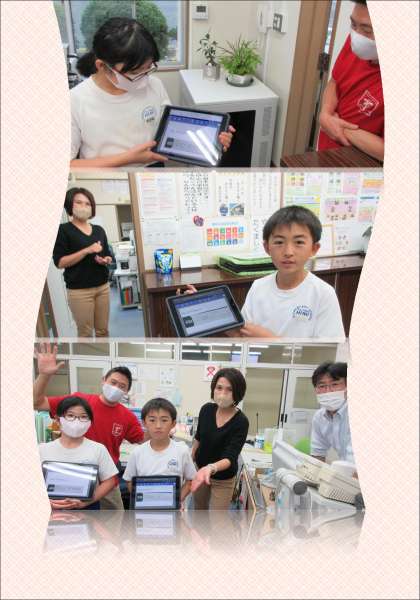 5年生は、外国語の学習成果を職員室に披露しに来てくれました。児童からの質問「When is your birthday?」に「My birthday is 〜.」と答えると、タブレットPCのカードにスラスラと記録します。誕生月や日にちの言い方、質問文などをよく覚え、とても堂々とした学習態度でした。